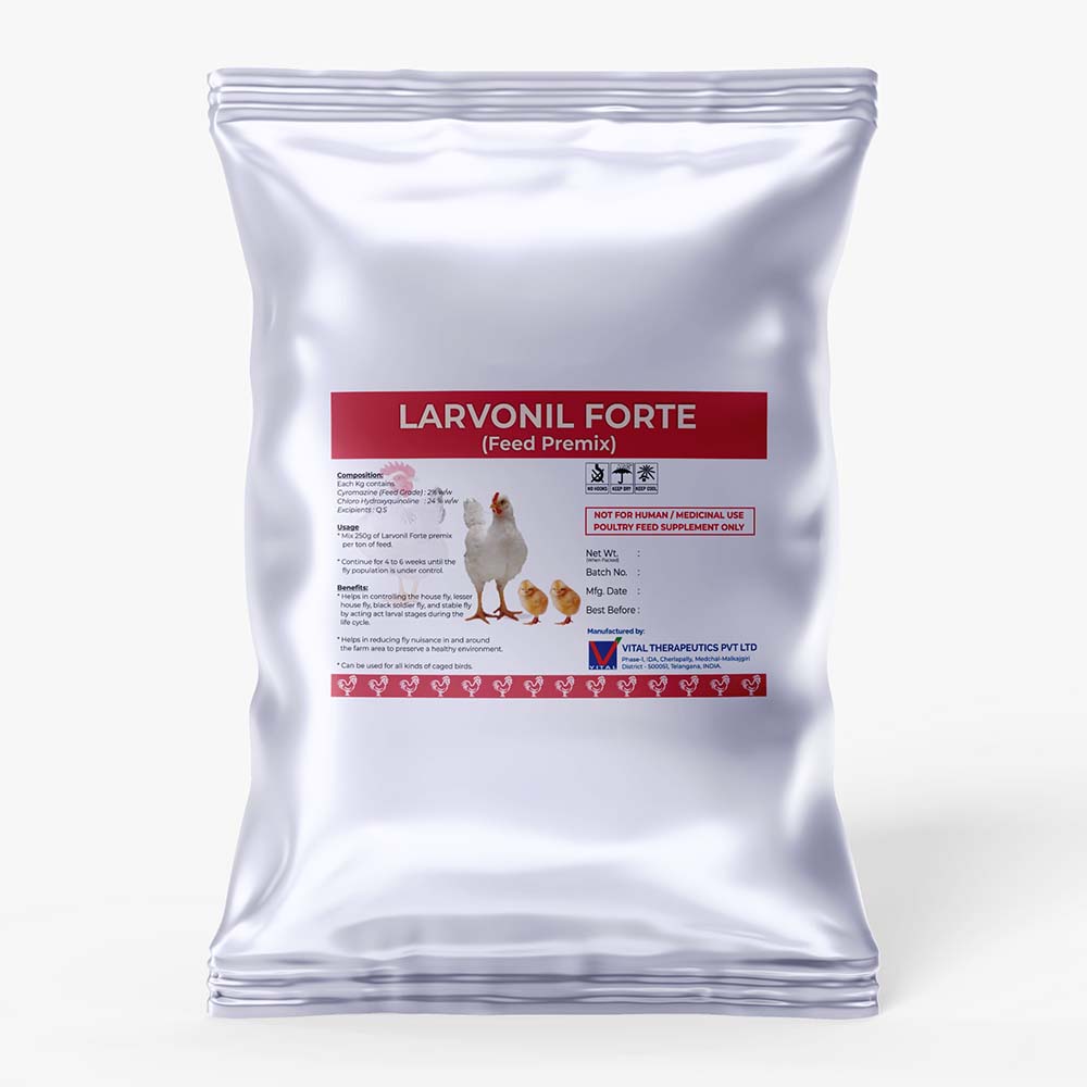 Mix 250 grams of Larvonil Forte premix per ton of feed
